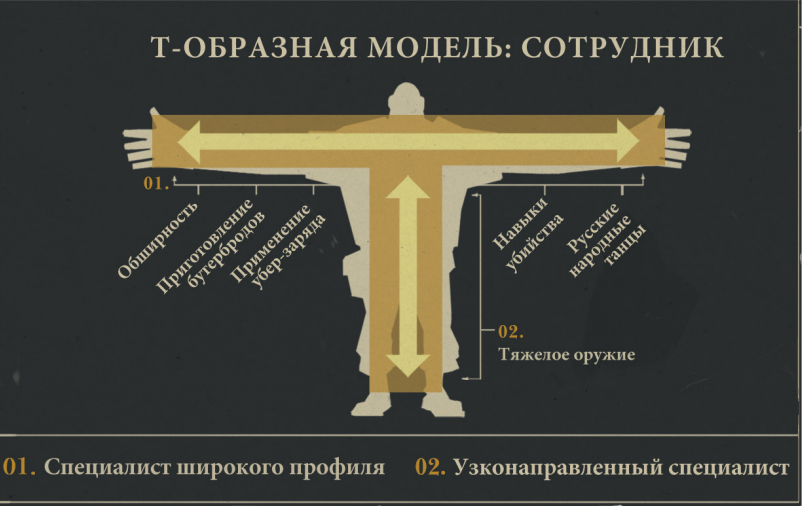 В Valve подбор сотрудников — ключевой процесс. Компания берёт людей, которые умеют работать в команде и знают, как решать задачи в разных областях. Таких специалистов называют «Т-образными». Это люди, которые разбираются в своей сфере и одновременно в смежных направлениях. Например, дизайнер создаёт визуал, участвует в тестировании идей и анализе работы продукта, а разработчик пишет код и понимает базовые принципы гейм-дизайна.
