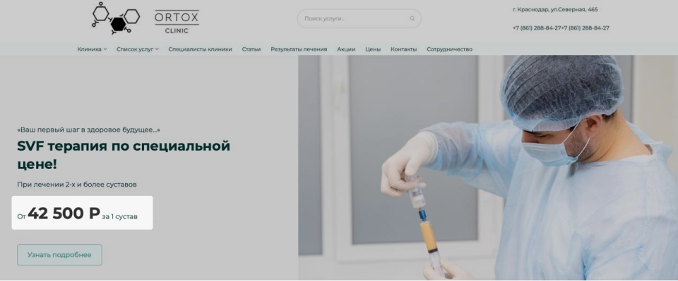 Клиника ORTOX. У компании было сильное SEO-продвижение и проработанные тексты, но нейропоиск не показывал сайт в коротких ответах. Основная причина — нехватка оцифрованных данных: на сайте мало конкретных цифр, структура услуг неясна, а во внешних источниках нет подтверждений — рейтингов, кейсов или отзывов.