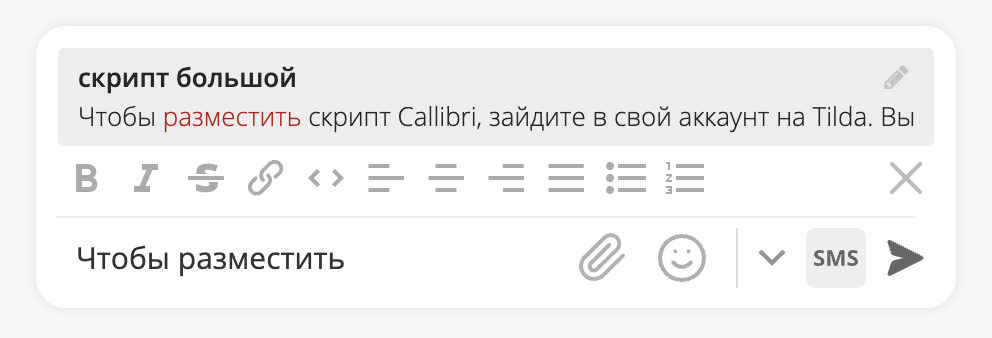 Шаблоны сообщений. Их создают заранее, чтобы сэкономить время на типовых ответах. Так, чтобы не печать одно и то же, оператор набирает ключевое слово — например, «доставка» — и видит готовый вариант. Его можно вставить одним кликом и при необходимости отредактировать перед отправкой.