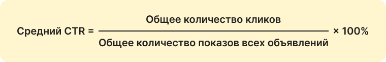 Чтобы понять, насколько рекламная кампания работает в целом, нужно посчитать средний CTR по формуле:
