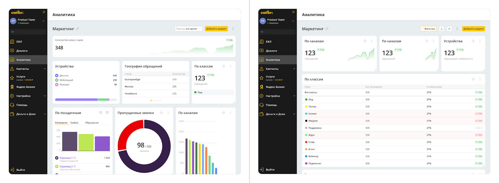 Для оценки эффективности маркетинга: Callibri. Дашборд аналитики собирает данные из сервисов Callibri и показывает их в одном окне — в виде графиков, таблиц и диаграмм. Функция доступна всем пользователям Callibri бесплатно.
