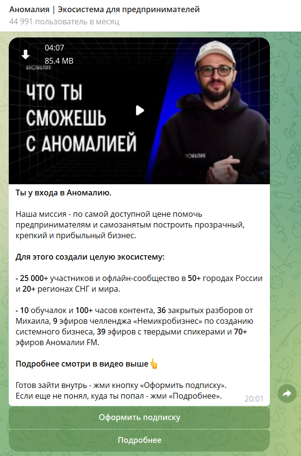 - На странице ноль подписчиков — придётся привлекать трафик через и бесплатный контент и настраивать таргет.