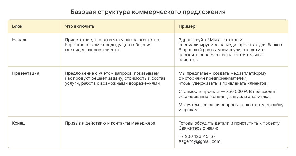- КП — это продолжение диалога, а не монолог. Вы показываете, что понимаете клиента и предлагаете решение под его задачи, а не просто продаёте услугу.