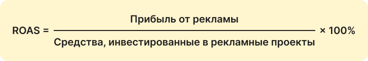 ROAS, или Return on Advertising Spend — метрика, показывающая насколько оправданы расходы конкретно на рекламу. Например, если хотите узнать, стоит ли вкладываться в Telegram Ads — нужно считать именно её.