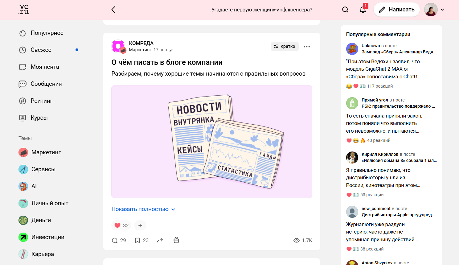 Часто за формулировками «увеличить вовлечённость» или «создать самый крутой блог в нише» скрывается простое желание — получить больше заявок и продаж. Например, клиент говорит: «Хочу, как у Авиасейлс, чтобы нас читала вся страна». Но после уточняющих вопросов выясняется, что на самом деле его локальной студии йоги нужны ученики из соседних домов. И тогда вместо стратегии для миллионной аудитории будет полезнее точечный план.