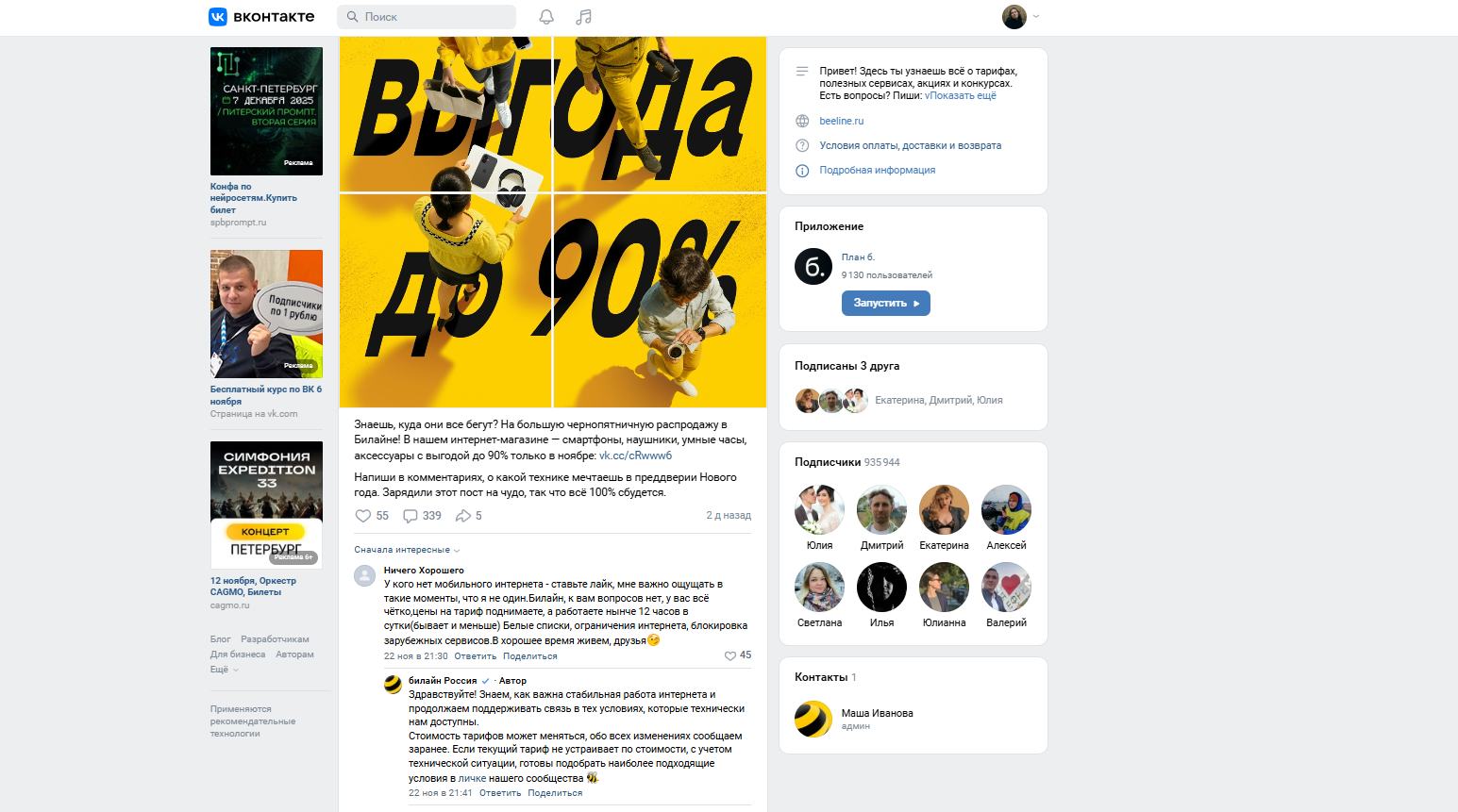 Помогает управлять репутацией. В соцсетях можно быстро реагировать на отзывы — как положительные, так и отрицательные. Это показывает, что компания заботится о клиентах и стремится решать их проблемы.