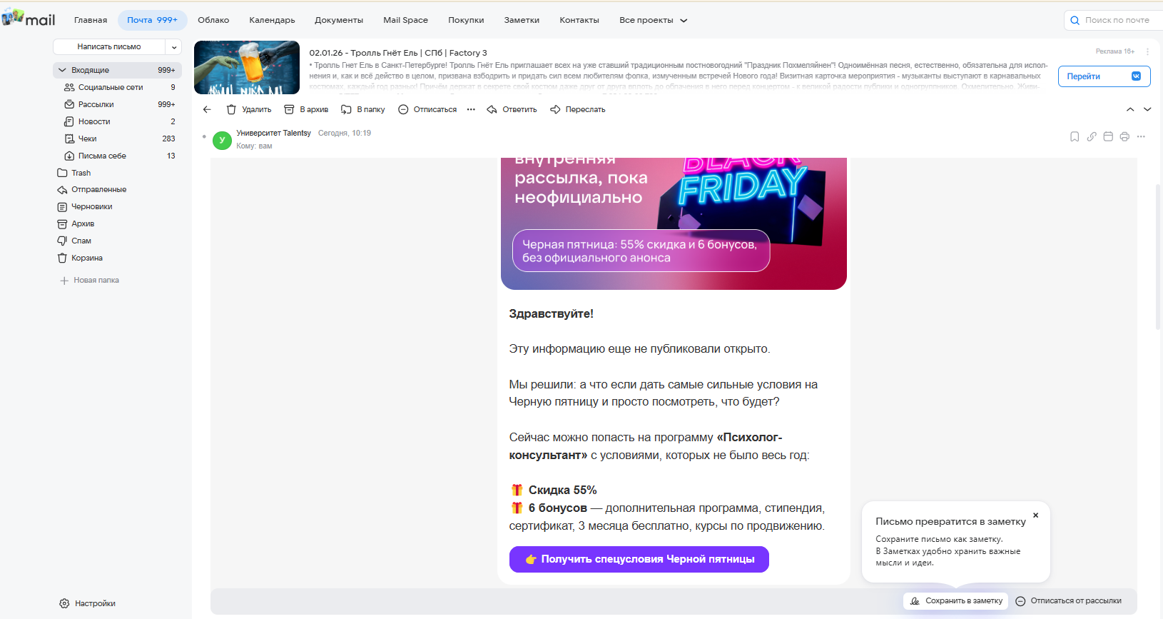 ✅ Кофейня через рассылку во ВКонтакте предлагает постоянным гостям «секретный» сезонный напиток, который не найти в общем меню. Так бизнес благодарит пользователей и поощряет повторное обращение.
