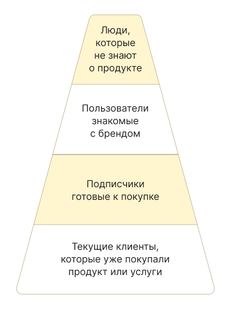 Низ воронки — горячая аудитория. Это пользователи, которые готовы покупать продукт или услуги. Подтолкнуть их к действию помогут, например, анонсы набора в новую группу, ссылки на запись и спецпредложения для подписчиков.