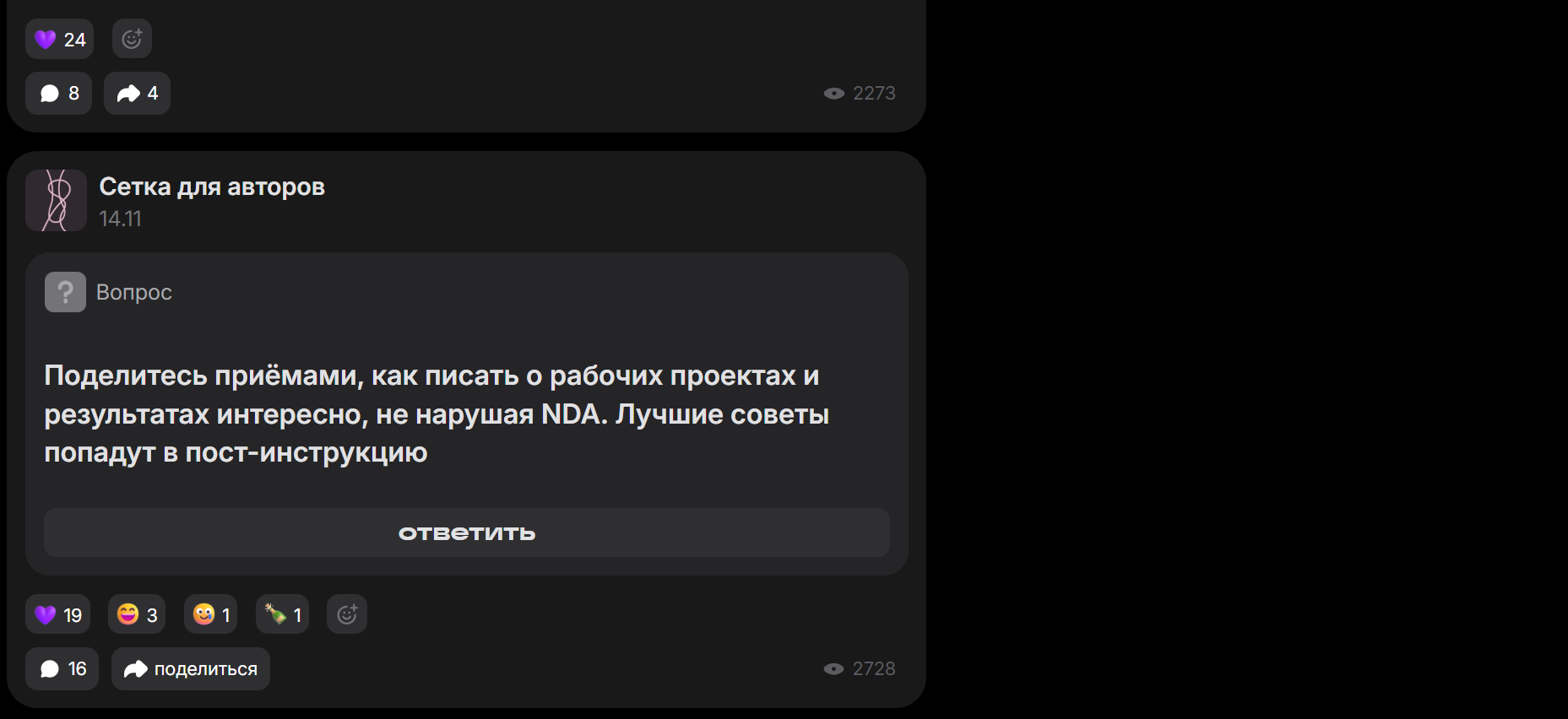 Реклама — тоже имеет место быть. Она помогает привлекать новую аудиторию. Например, можно публиковать релевантные посты в сообществах, схожих с вашей тематикой.