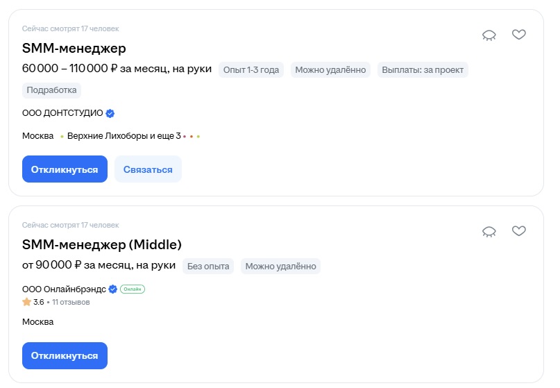 Стоимость услуг часто складывается из опыта SMM-менеджера: