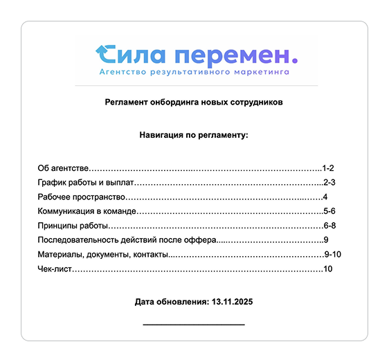 Главный лайфхак — не полениться и прописать каждый шаг сотрудника с его первого дня в агентстве. Чем раньше это сделаете, тем быстрее сможете выдохнуть, выйти из операционки и наконец уйти в отпуск.