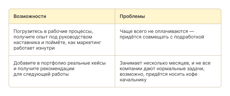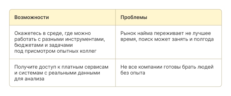 Шаг 1. Стажировка. Это возможность получить первый реальный опыт в компании. Например, стажировка в рекламном агентстве, где вы помогаете запускать промо-кампании, анализируете статистику и готовите отчёты для клиентов.