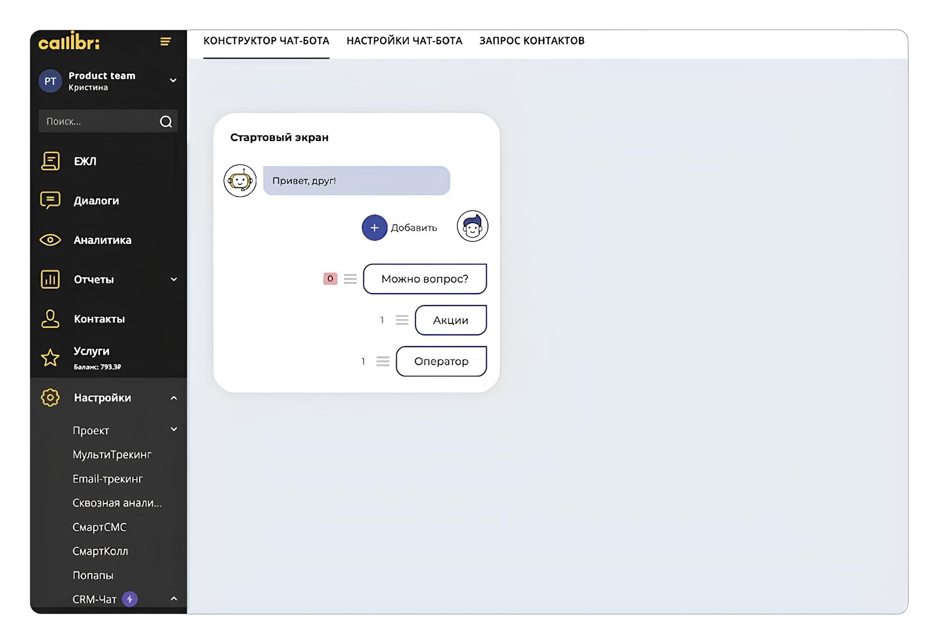 Сведите все обращения в один интерфейс. Когда добавляются новые каналы, легко потерять часть сообщений от клиентов и подпортить репутацию. Чтобы этого не случилось, компании подключают специальные сервисы. CRM-Чат Callibri показывает заявки из мессенджеров, соцсетей, классифайдов и чата на сайте в одном окне: личном кабинете или вашей CRM. Это удобно и безопасно: менеджеру не нужно переключаться между приложениями, а если он уволится — клиентская база не останется у него в телефоне.