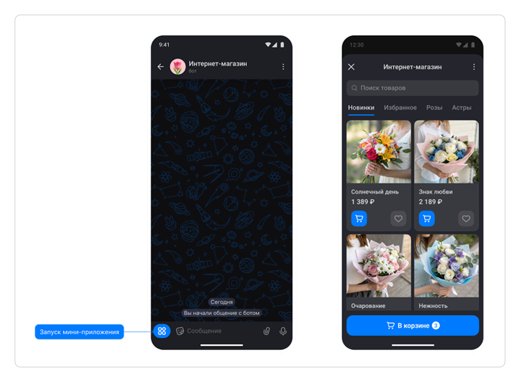 Ещё есть мини-приложения — они расширяют возможности бизнеса. Так, клиент может выбрать услугу или оплатить заказ прямо в Max. Но чтобы подключить сервис, понадобятся навыки работы с кодом: нужно уметь собирать проект через командную строку и загружать его в систему.