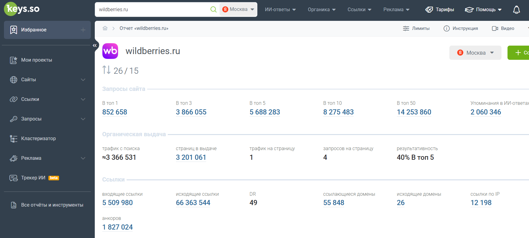 Keys.so — российский сервис для анализа конкурентов с упором на SEO и рекламу. Он показывает поисковые запросы, страницы с наибольшей посещаемостью и объявления конкурентов в Яндекс Директе и Google Ads. Сервис используют, когда нужно разобраться, откуда именно приходят посетители. Есть браузерное расширение и боты для быстрых проверок.