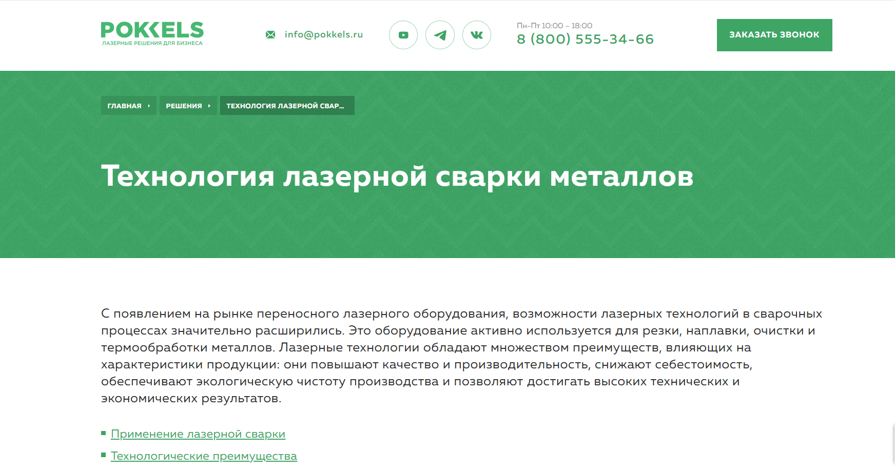Pokkels — производитель лазерного оборудования для очистки, сварки, гравировки и даже дезактивации радиационного загрязнения. Среди его клиентов гиганты отечественной промышленности: РосАтом, Северсталь, Газпром, Лукойл. Продукт сложный, дорогой и с длинным циклом принятия решения.