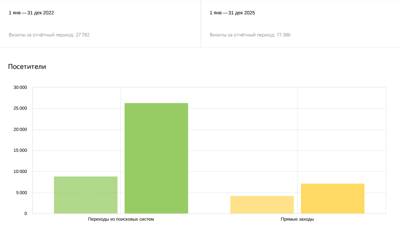 Контент не просто привлекал трафик, но и хорошо удерживал внимание. В среднем пользователи проводили на странице статьи 4,5 минуты — это в 2,5 раза больше, чем на страницах каталога. Такой разрыв показывает, что материалы помогают разобраться в теме и подводят к обращению.