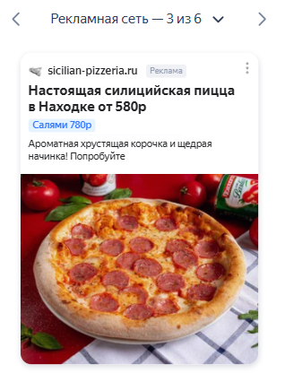 - Медийно-контекстный баннер, чтобы привлечь широкую аудиторию и повысить узнаваемость пиццерии.