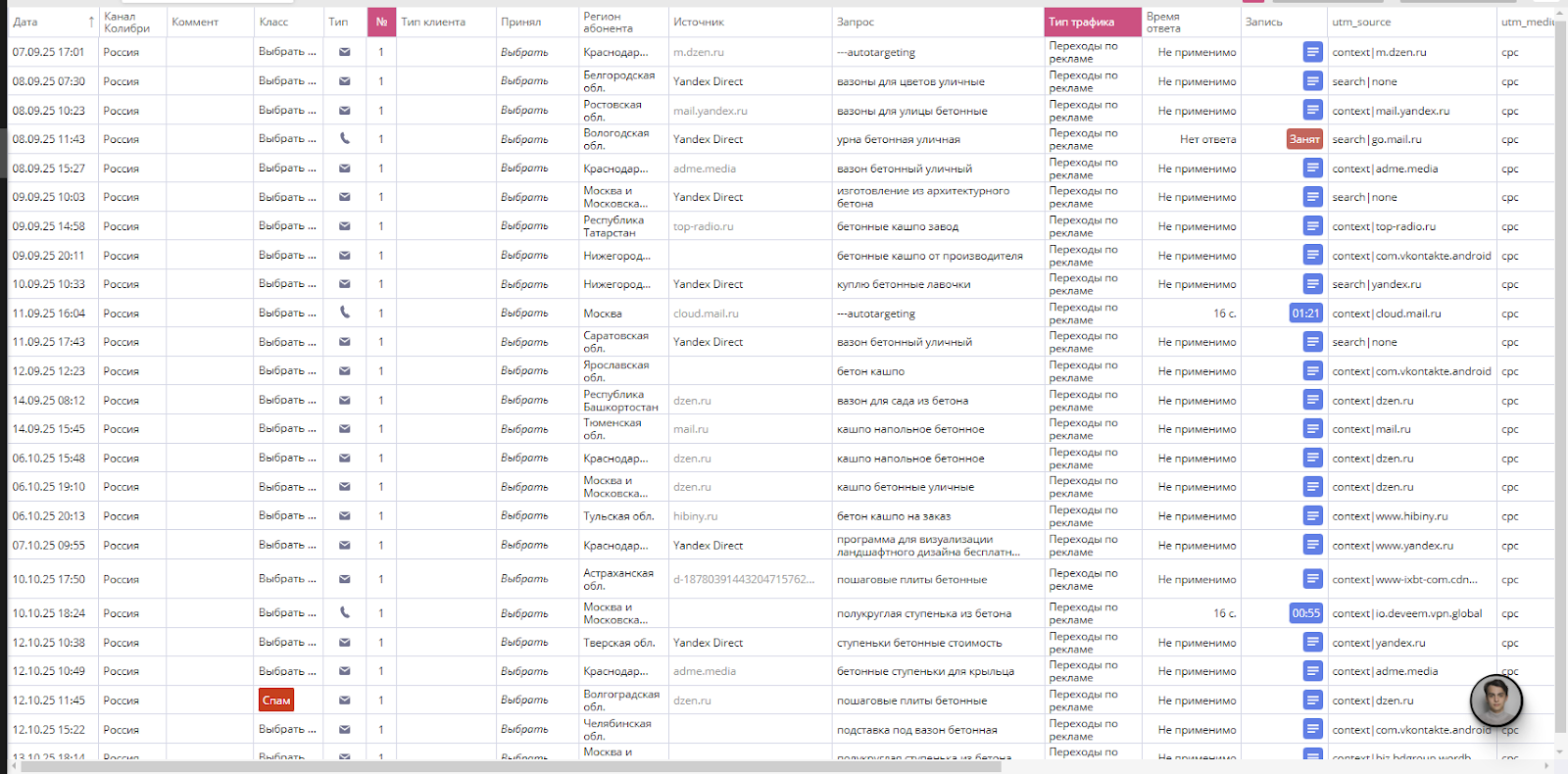 - Прозрачная атрибуция. Callibri связала каждый звонок и заявку с конкретным источником, кампанией и даже ключевым словом. Это убрало путаницу и сократило объём «тёмных данных».
