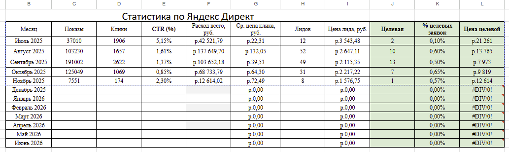 - В ноябре — 8 целевых звонков при цене цели 12 614 ₽.