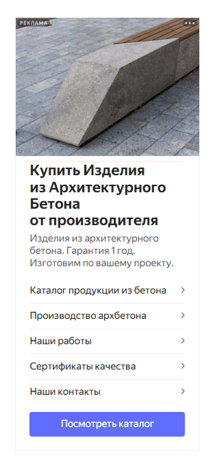 Ко мне обратился производитель малых архитектурных форм из бетона: скамеек, урн, вазонов, барных стоек и другой уличной мебели. Компания работает по всей России, с акцентом на регионы до Сибири. Основные клиенты — B2B- и B2G-сегмент: застройщики, городские администрации, кафе, отели. У ниши длинный цикл сделки, высокий средний чек и сложный путь до заявки: человек редко принимает решение сразу.