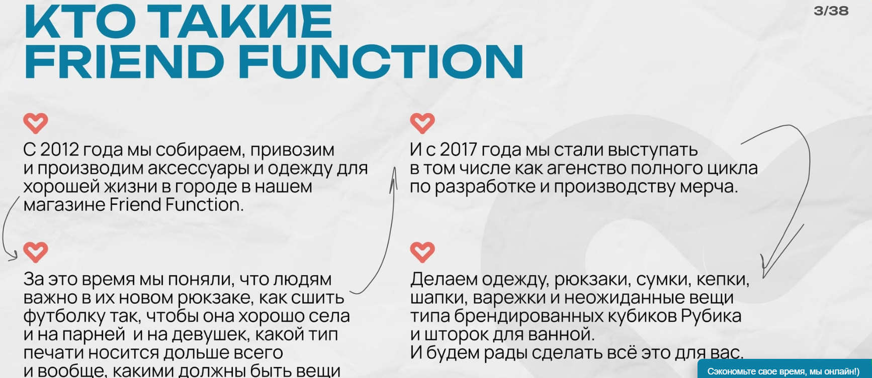 Информация о компании и об истории бренда. Важно дать партнёрам и рекламодателям контекст: кто вы, как развивались, какие ценности несёт бренд. Это помогает создать доверие у партнёров, даже если компания недавно на рынке.