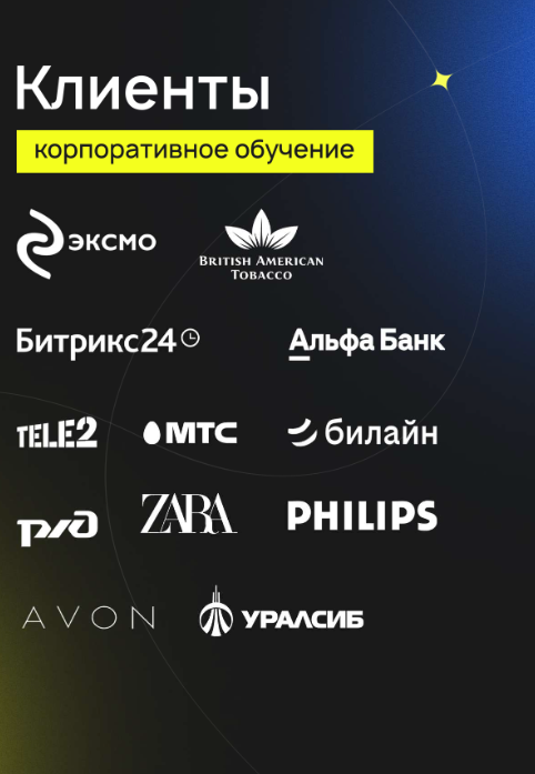 Список партнёров и клиентов. Это повышает доверие к бренду и помогает потенциальным рекламодателям или партнёрам. У крупных компаний это могут быть известные компании, а у малого бизнеса — постоянные клиенты, локальные организации и даже отзывы обычных покупателей. Поимо названия бренда используйте логотипы партнёров или фотографии совместных проектов.
