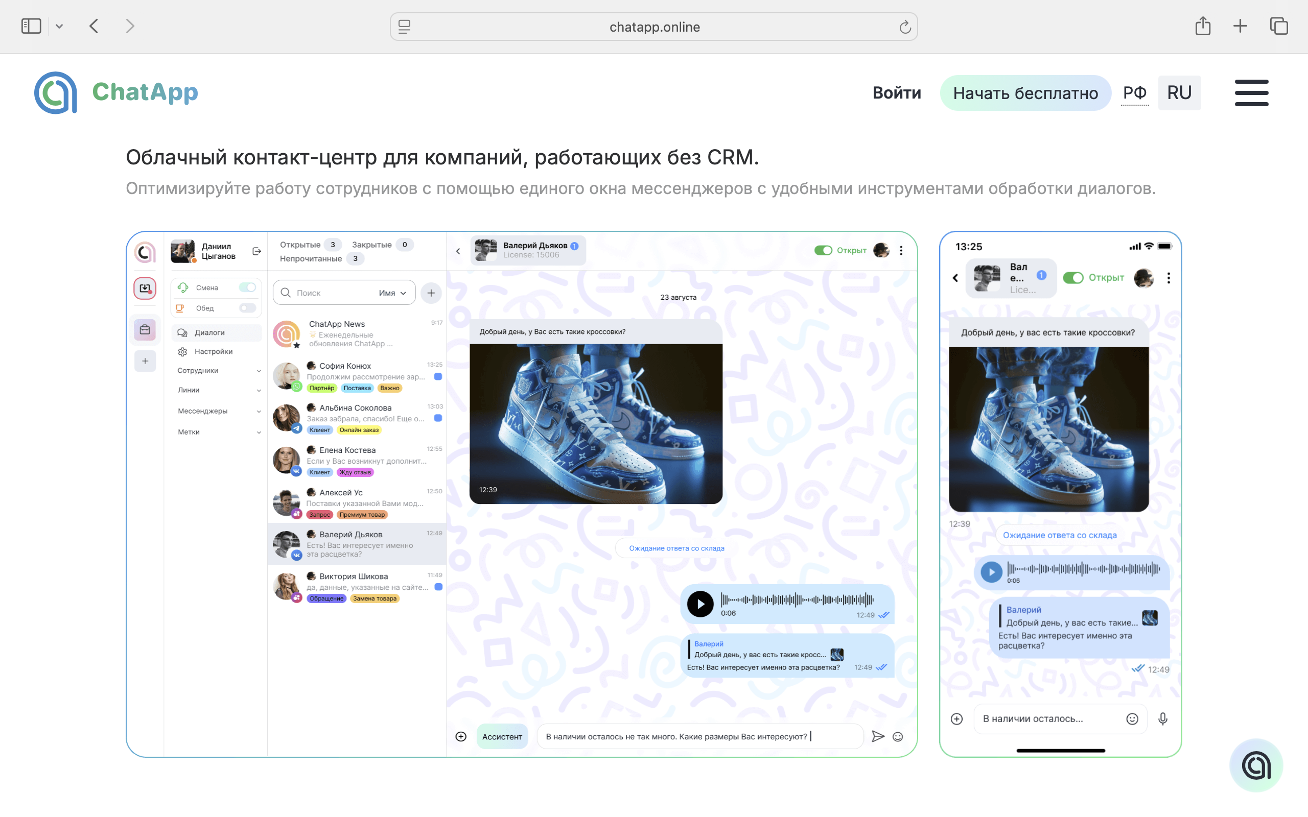 Если хотите не терять заявки и оптимизировать работу менеджеров: CRM-Чат Callibri. Он собирает в одном окне с вашей CRM-системой все обращения, в том числе из WhatsApp. Сообщения падают в вашу CRM и личный кабинет Callibri, а история переписки сохраняется навсегда. Например, менеджер может из одного окна общаться с клиентами из Telegram, WhatsApp Авито и Max, не переключаясь между разными приложениями.