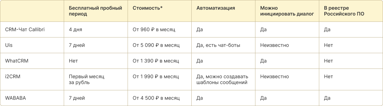 Можно первым начинать переписку с клиентами. Часть сервисов позволяют только отвечать на сообщения, но не разрешают делать рассылку по базе. В других такая опция не входит в базовый тариф. Если вам важно писать первыми, учитывайте этот критерий.