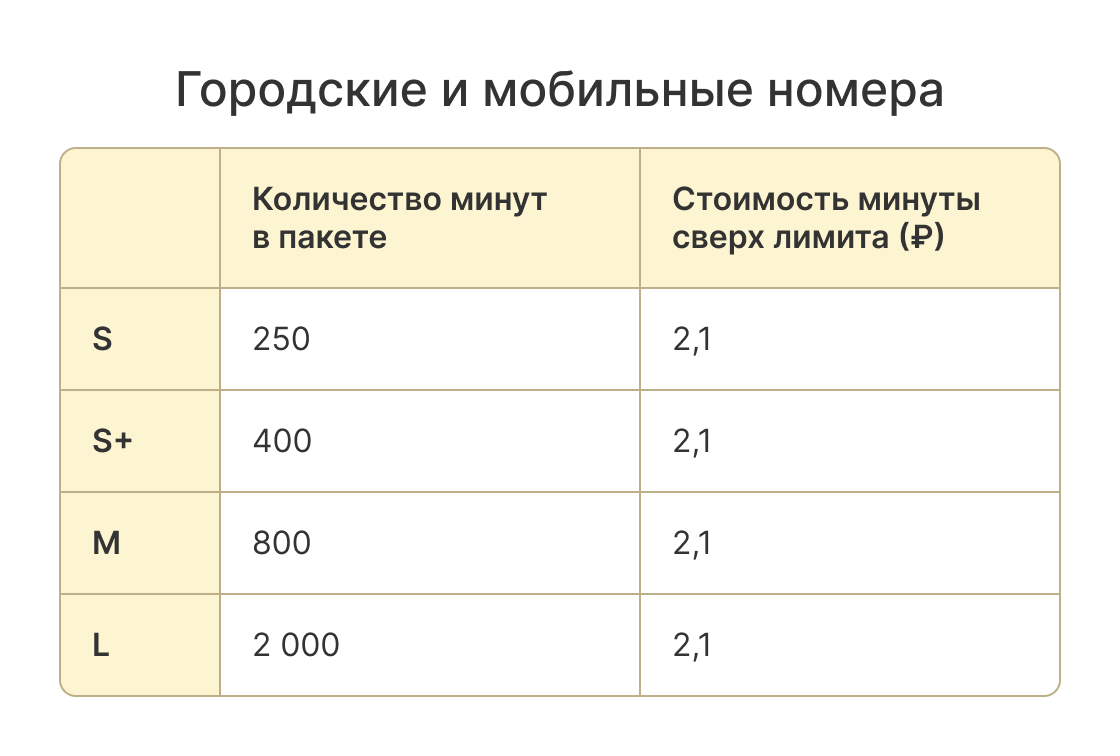 Ещё появилась тарификация входящих звонков на городские и мобильные номера. В пакетах фиксированный лимит минут, превышение оплачивается отдельно.