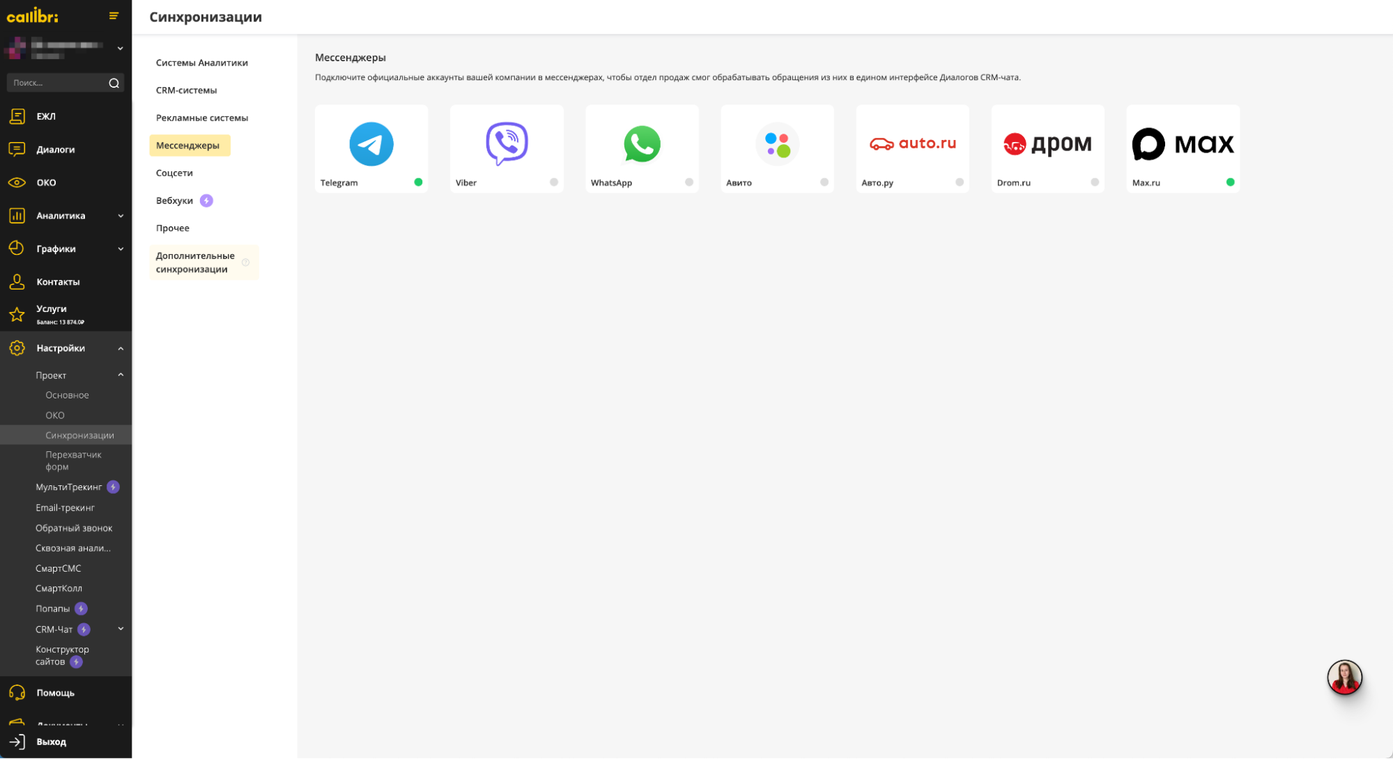 Процесс подключения простой: создаёте бота в MAX, копируете токен и добавляете его в настройках личного кабинета Callibri. После этого все сообщения из мессенджера автоматически попадают в раздел «Диалоги». Это удобно: заявки из разных каналов собираются в одном месте. Вы видите реальные источники трафика и можете точнее настраивать рекламные кампании.
