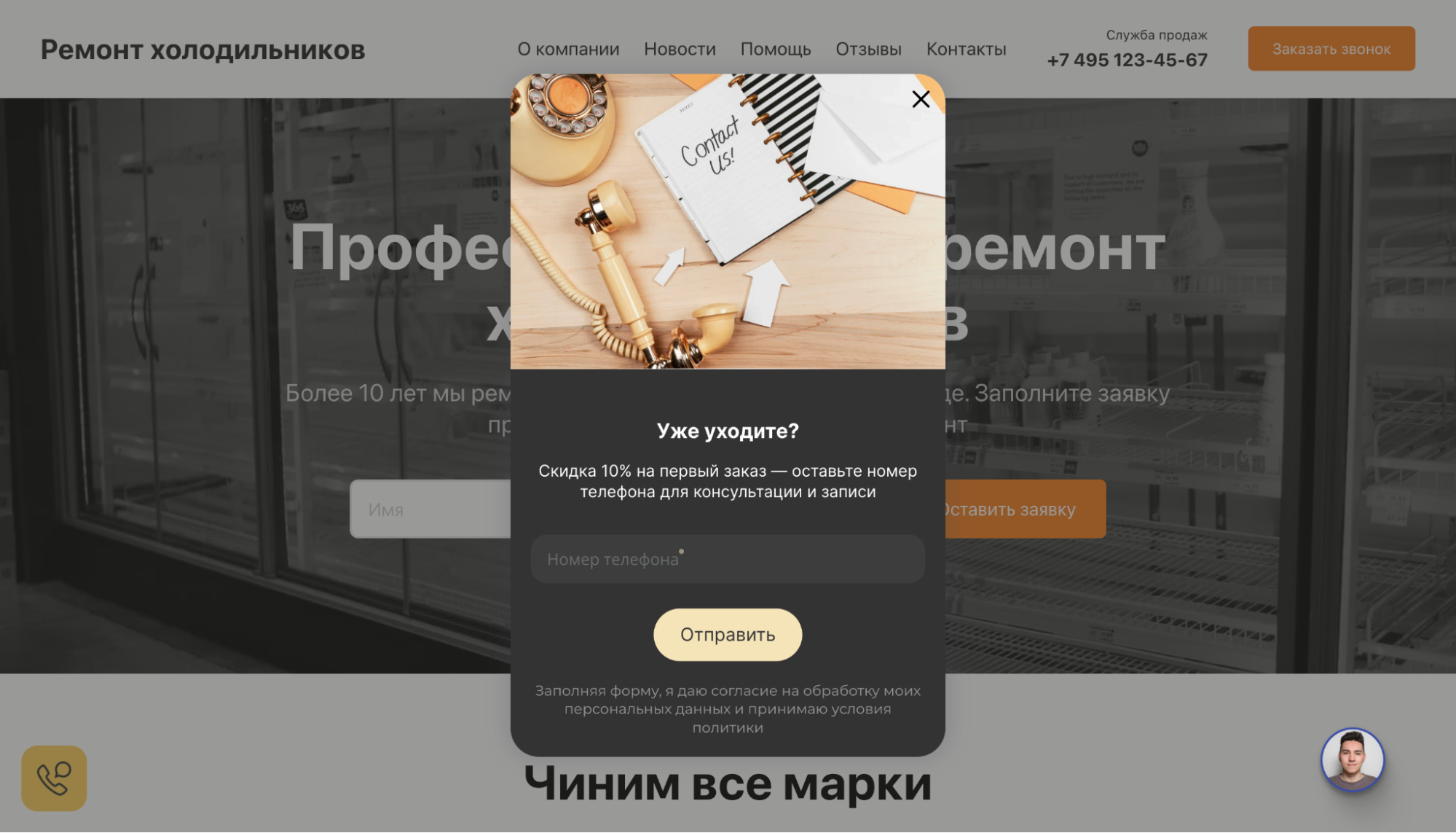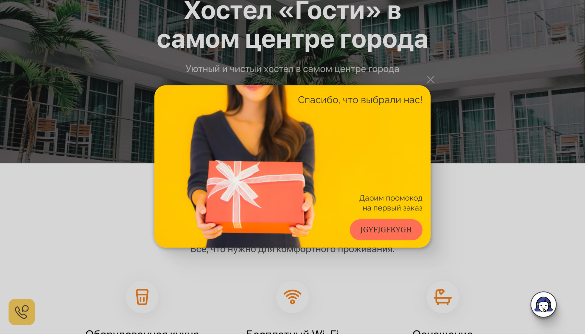 Попап появляется, когда пользователь пытается уйти со страницы. В этот момент можно предложить купон на скидку или бонус к заказу.