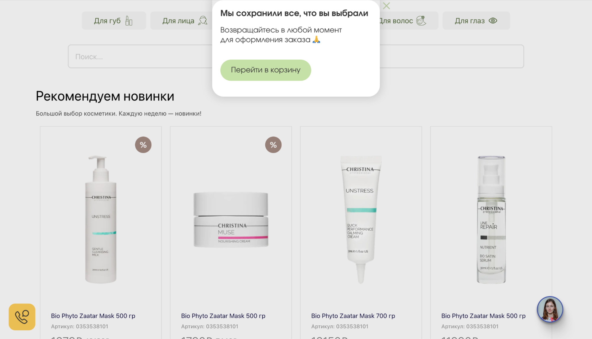 Бывает так, что пользователь добавил товары в корзину, но не оплатил их — отвлёк телефонный звонок или сообщение в рабочем чате. Попап может вернуть человека «в корзину».