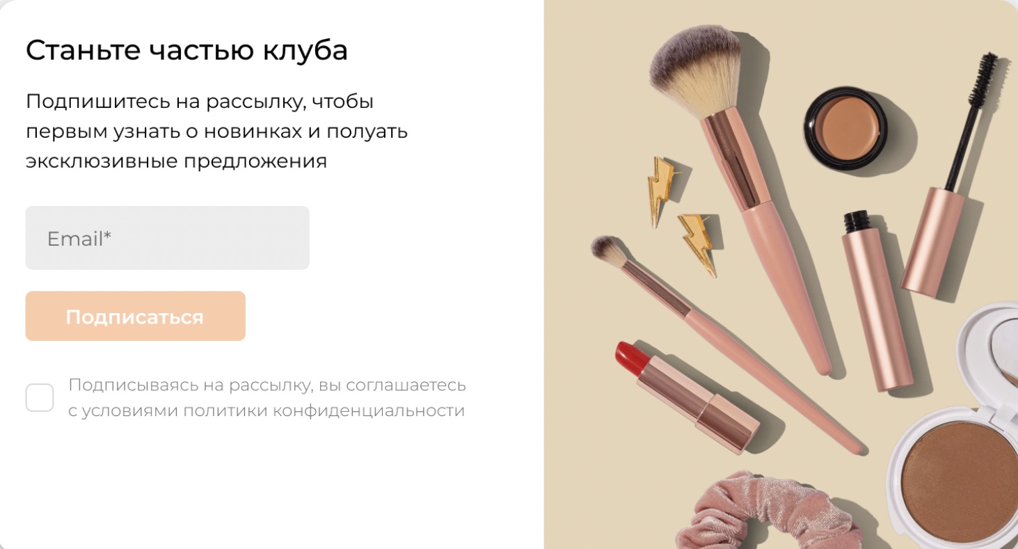 Приветственный попап (entry pop-up). Появляется сразу после входа на сайт и помогает установить первый контакт. Через него можно, например, пригласить подписаться на рассылку — так вы начнёте собирать собственную базу контактов. Или же рассказать об акции, распродаже или бонусе, чтобы подтолкнуть к покупке.