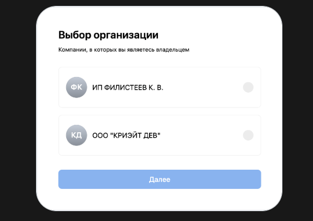 Пройти верификацию может владелец фирмы или официальный представитель. Если выбрали Госуслуги, обновите сведения из ЕГРЮЛ и ЕГРИП. Для подтверждения с помощью банковских сервисов — разрешите передачу данных с помощью SMS-кода.