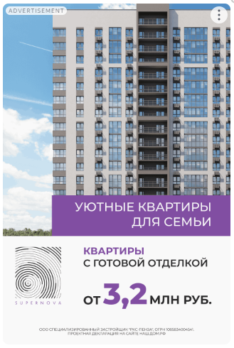 На втором месте — объявления с минимальной ценой: «Уютные квартиры для семьи от 3,2 млн».