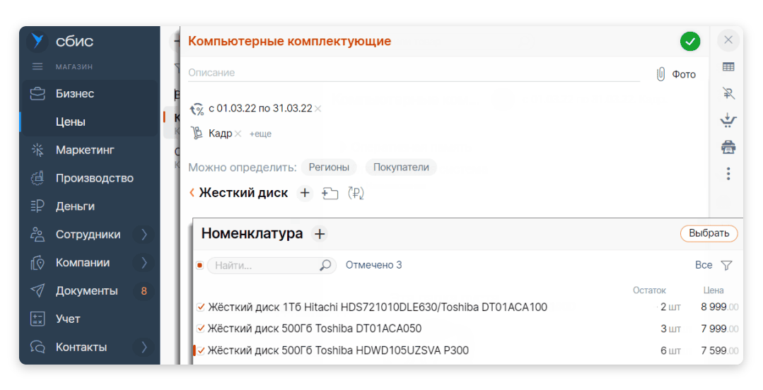 Saby Retail — целая экосистема продуктов для бизнеса, в которую включены управление продажами и складом. Здесь также есть инструменты для бухгалтерского учёта, работы с клиентами в CRM-системе, мотивации сотрудников.