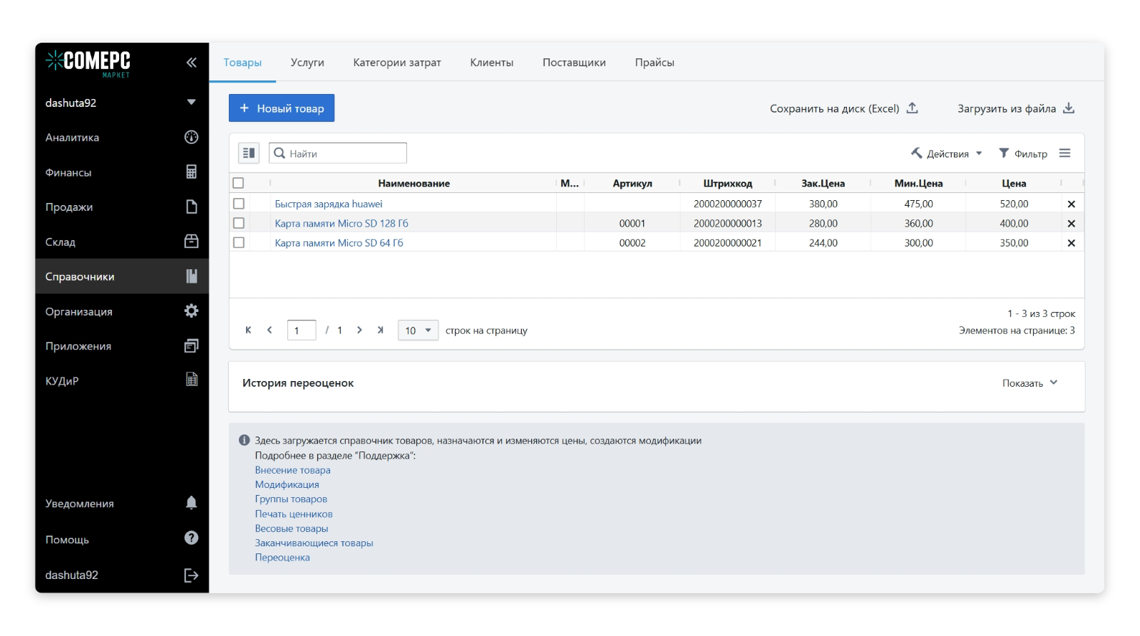 - В некоторых инструментах есть лишние действия, например при переоценке нельзя изменить цены сразу в каталоге — нужно выгружать, загружать excel-файлы.