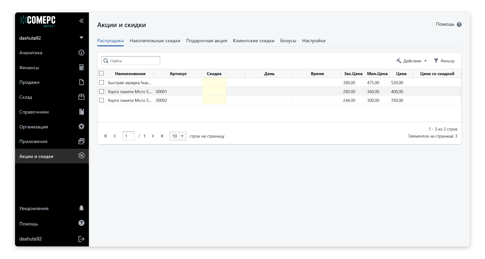 - Вижу график продаж — спады и подъемы, выравниваю их с помощью акций.