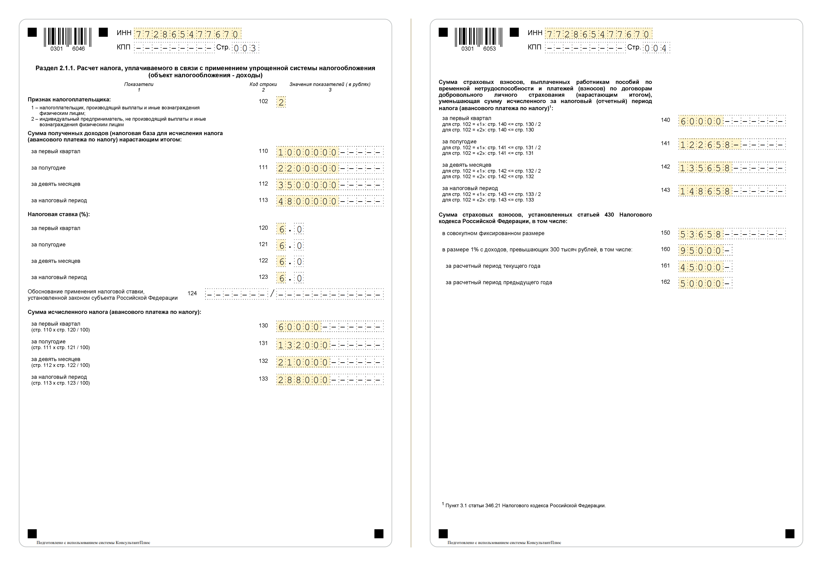 Форма декларации для УСН «Доходы и «Доходы минус расходы» одинаковая. Отличается только порядок заполнения. Для тех, кто работает по УСН «Доходы» обязательно заполнить титульный лист, разделы 1.1 и 2.1.1.